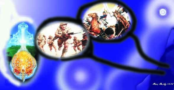 mellom "de gamle" makt/materie-strebende krefter og de "nye" -